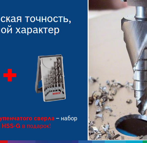 При покупке Ступенчатого сверла – набор сверл HSS-G в подарок!
