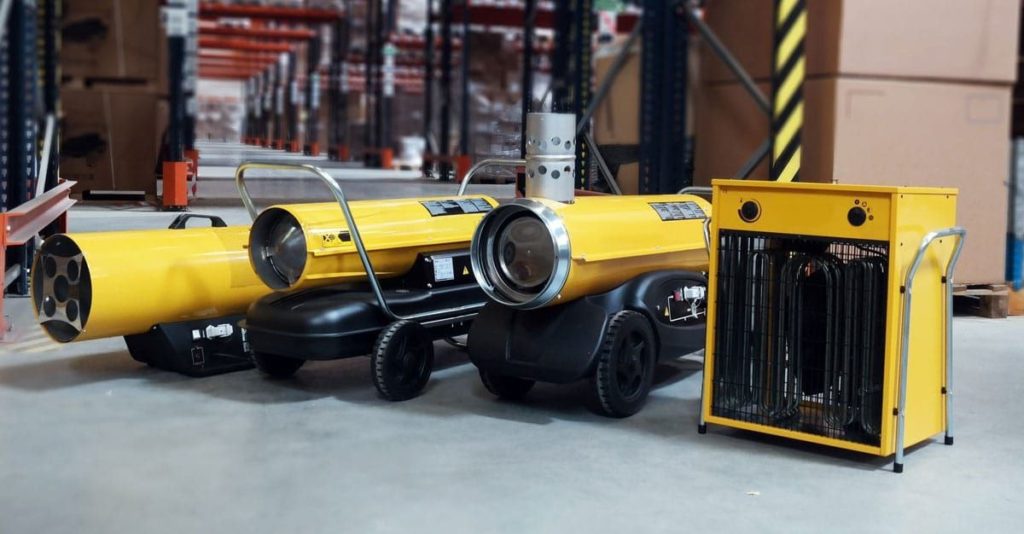 - Электрические тепловые пушки — не требуют топлива и могут использоваться в закрытых помещениях. Они не выделяют выхлопные газы, что делает их безопасными для эксплуатации.