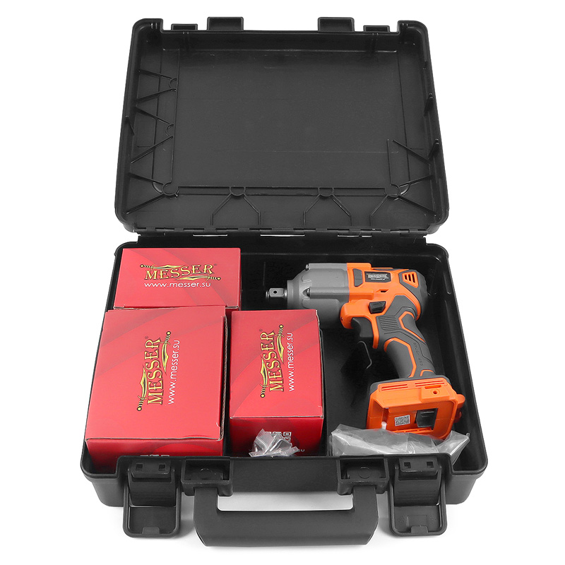 Аккумуляторный ударный гайковерт MESSER DCW 9 может поставляться в комплекте с 2-я аккумуляторами емкостью 2 или 4 Ah.