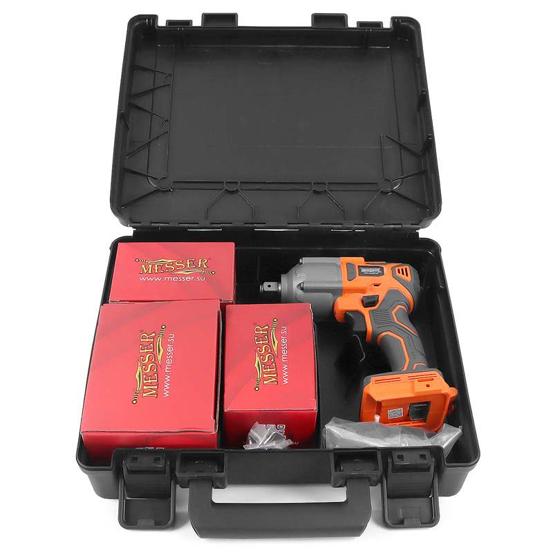 Аккумуляторный ударный гайковерт MESSER DCW 9 может поставляться в комплекте с 2-я аккумуляторами емкостью 2 или 4 Ah.