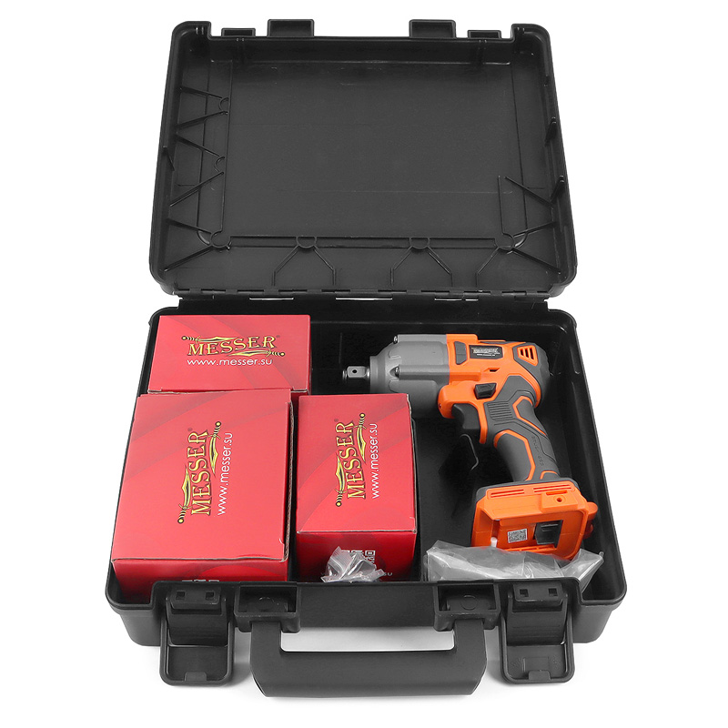 Аккумуляторный ударный гайковерт MESSER DCW 9 может поставляться в комплекте с 2-я аккумуляторами емкостью 2, 4 или 6 Ah.