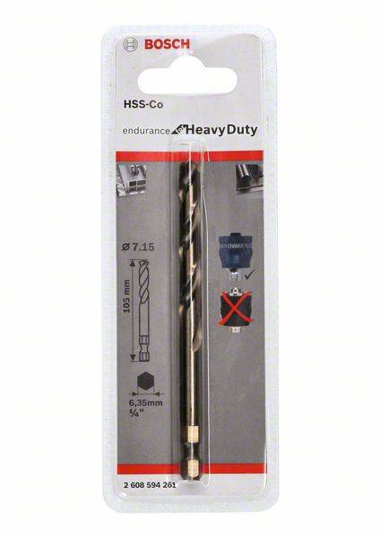 Центрирующее сверло Plus HSS-Co для металла, нержавеющей стали и стекловолокна Диаметр, мм: 7,15 Хвостовик, форма: Шестигранник Общая длина, мм: 105