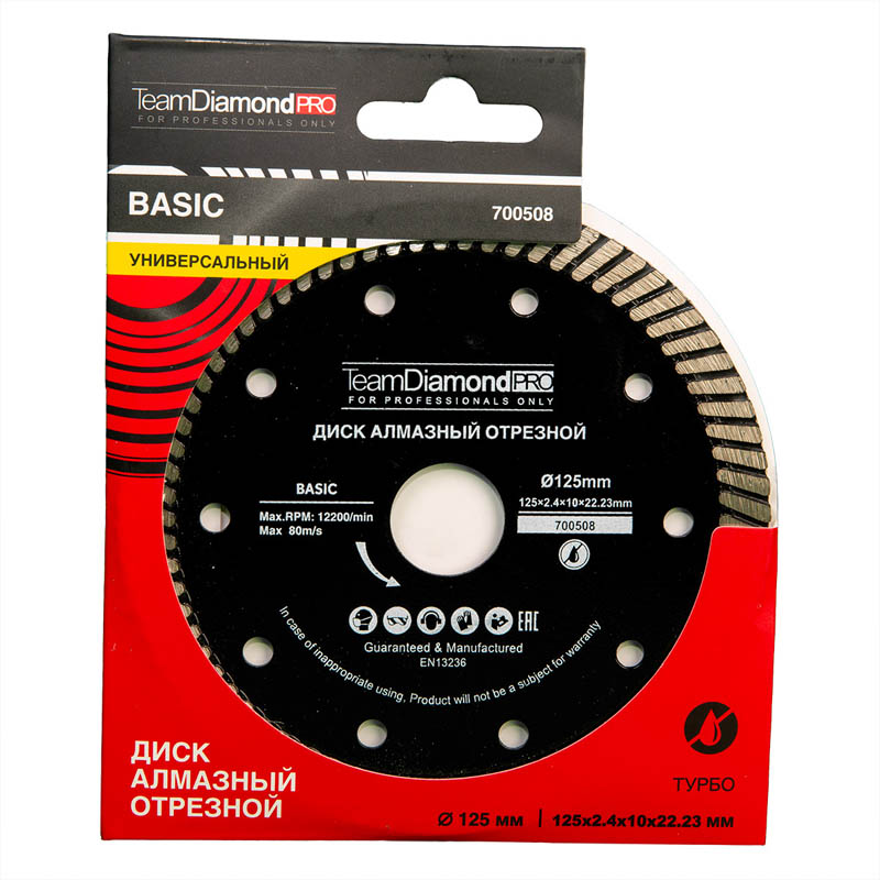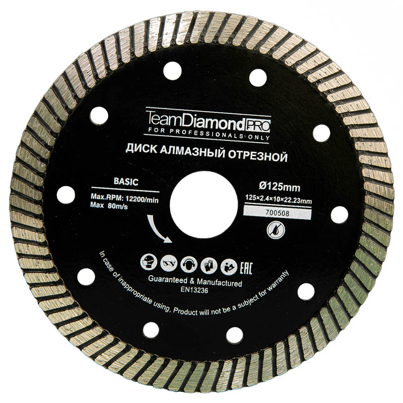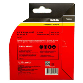Диски алмазные TeamDiamondPRO серии Basic — это экономичное решение для резки бетона, искусственного и природного камня на углошлифмашинах. Высота алмазного слоя 10 мм. Сплошносегментная режущая кромка обеспечиващая чистый и ровный рез без сколов. Технология производства: горячее прессование.