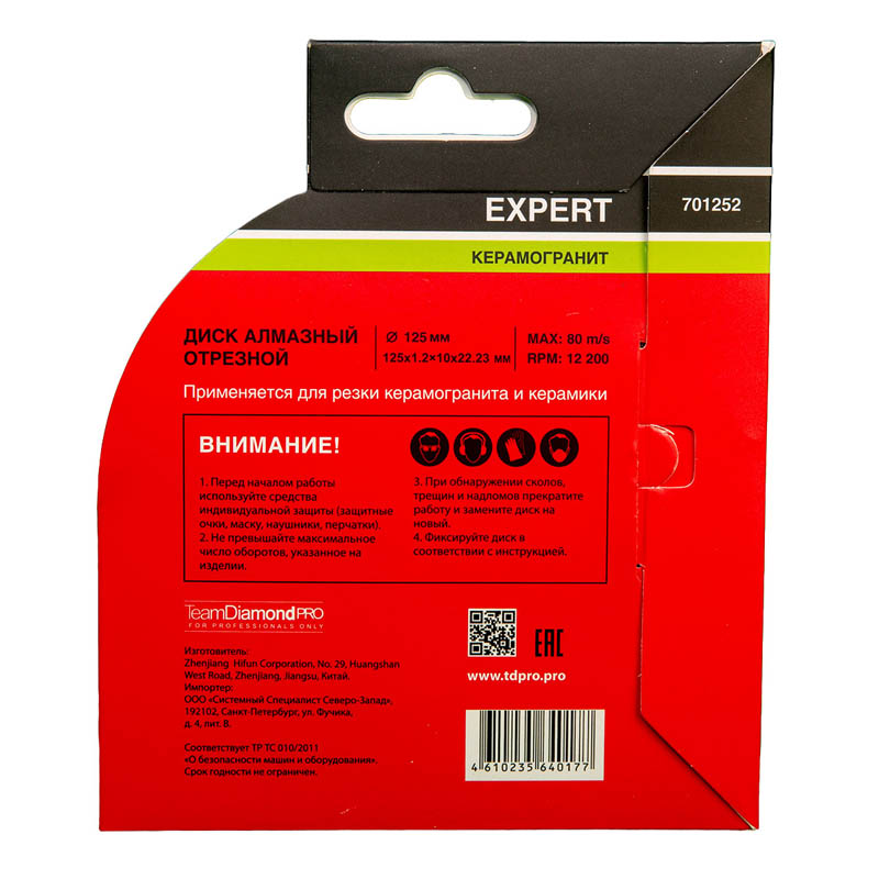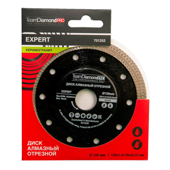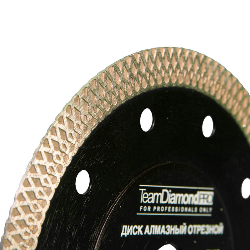 Диск алмазный толщиной 1.2 мм для работ по керамограниту и керамике. Высота алмазного слоя 10 мм.