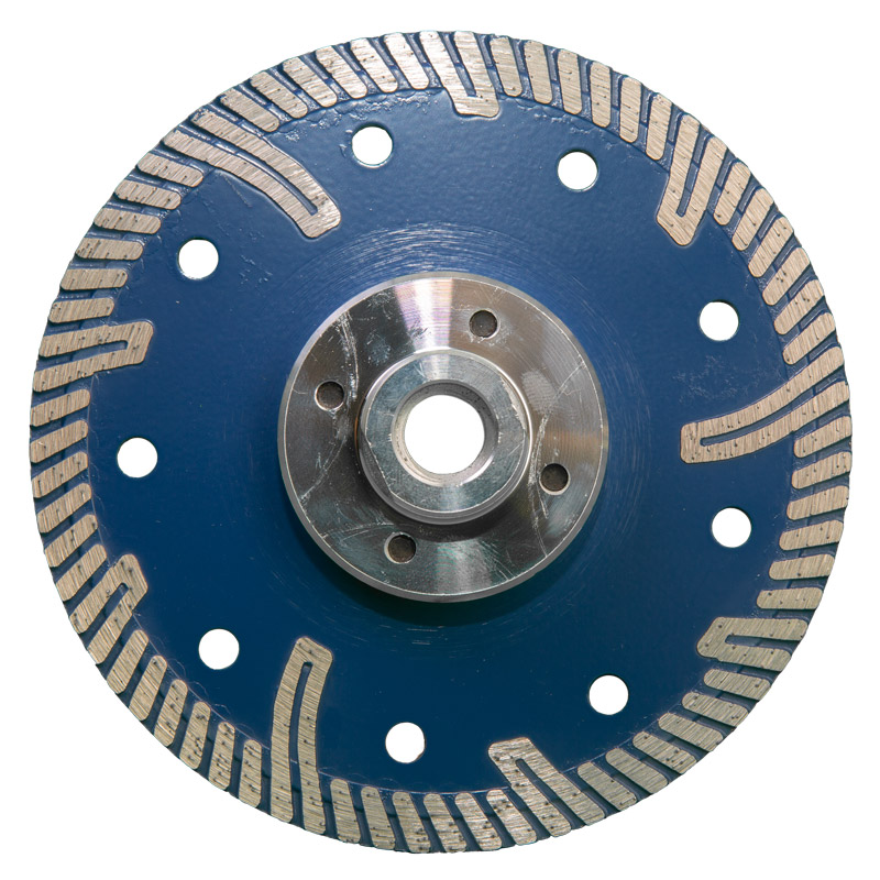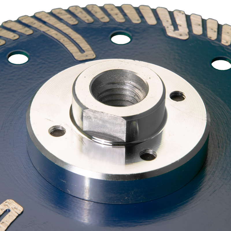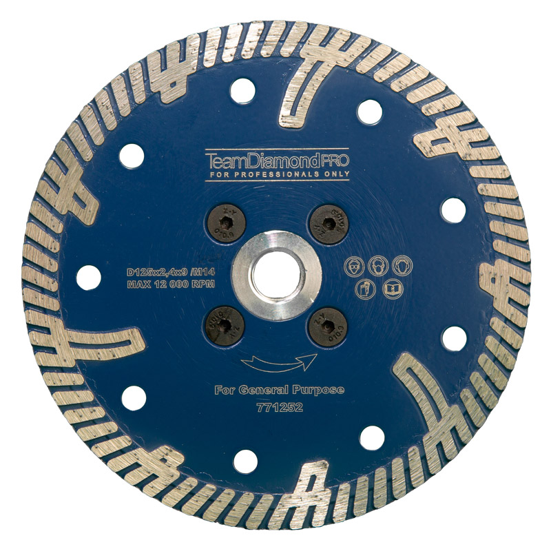 Диск алмазный TeamDiamondPRO по граниту и железобетону с фланцем – серия дисков специально разработанная для быстрой резки гранита и других прочных материалов. Благодаря особой кромке диска рез получается чистым, без сколов, а применение фланца с резьбой М14 (с помощью, которой диск накручивается прямо на шпиндель углошлифовальной машины), позволяет выполнять резы вплотную к любой поверхности (стене, полу, потолку) и дает дополнительную жесткость диску.