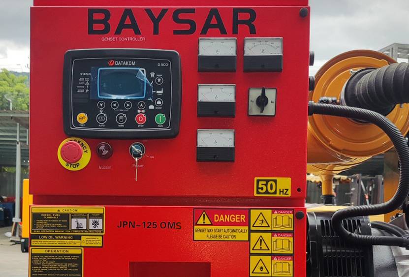 Дизельный генератор Baysar JPN-125 MS — дизельный генератор с мощностью 100 кВт. Работает с японским 6-цилиндровым двигателем Mitsubishi Fuso 6D16T, расположение цилиндров — в одну линию, система охлаждения — жидкостная. Альтернатор установлен от известного бренда Stamford, панель управления от Datakom.