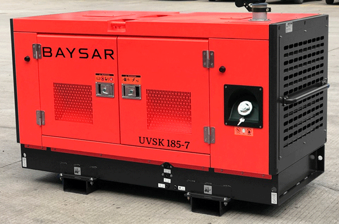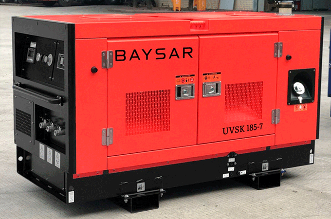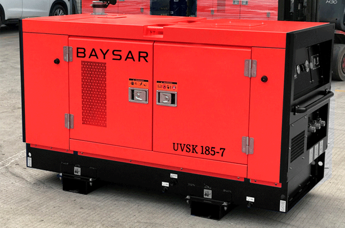 Дизельный компрессор Baysar UVSK 185-7 – дизельный компрессор винтовой с производительностью 5 м3/мин и давлением 7 бар. Работает на японском дизельном двигателе ISUZU JX493G43 мощностью 36.5 кВт. Исполнение – стационарное.