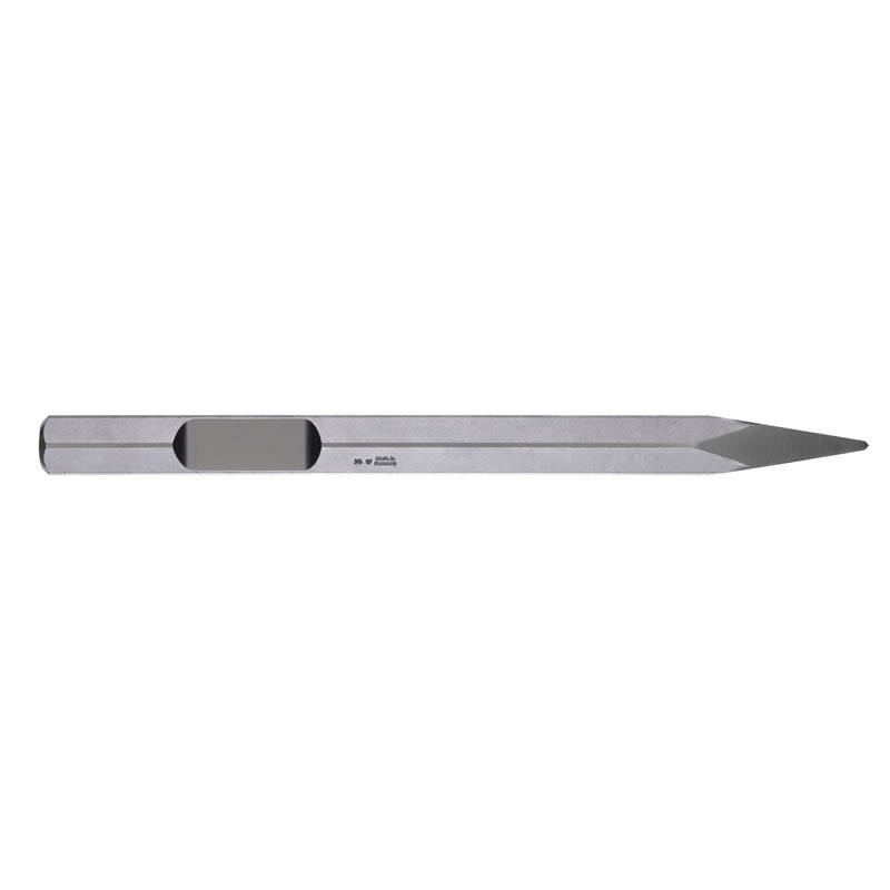 - Для широкого спектра работ по долблению. Наконечник имеет грани для увеличения разрушающего эффекта и предотвращения заклинивания.