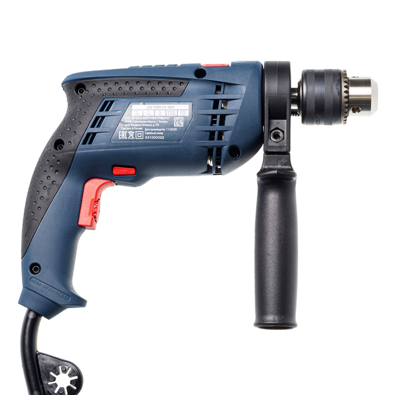 | Состав | Дрель электрическая ударная, Дополнительная рукоятка, Ограничитель глубины, Ключ для патрона, Инструкция по эксплуатации, Картонная коробка |