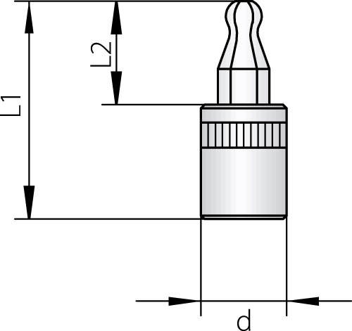 - Приводной квадрат по DIN 3120 — C 6.3, ISO 1174, с фиксацией шариком