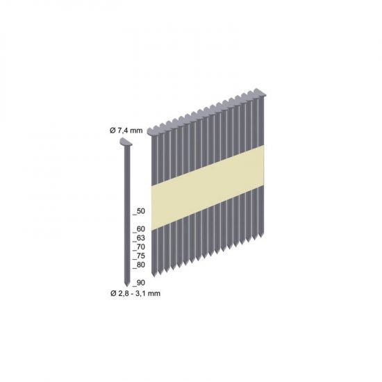 Гвозди с кольцевой накаткой и полокруглой головой 7.4×2.8/63мм RS-P4000 для M18FFN, Milwaukee
