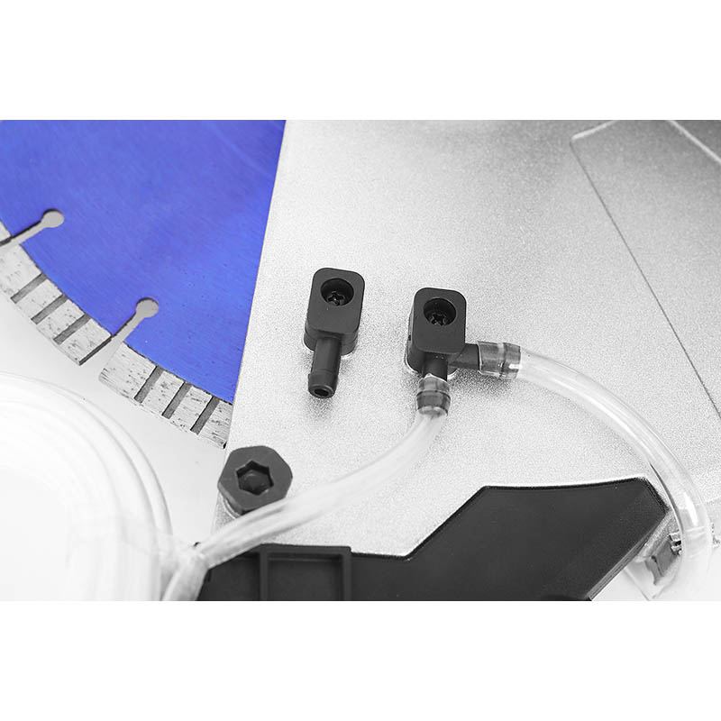 Бетонорез MESSER KX355D снабжен системой подачи воды в зону реза. Данная функция также позволяет значительно увеличить ресурс алмазного диска. Как и любое оборудование, работающее с подачей воды, бетонорез MESSER оснащен системой защиты оператора от поражения электрическим током PRCD (УЗО).