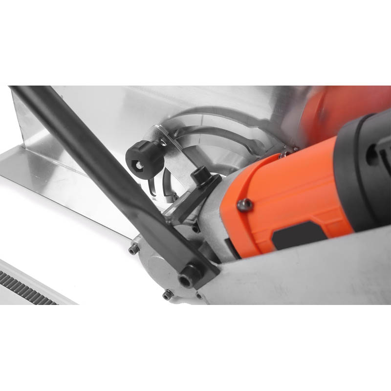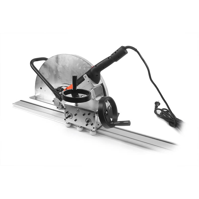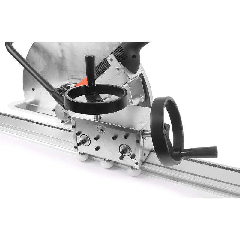 Каретка направляющей шины снабжена штурвалами, при вращении которых обеспечивается точная регулировка глубины резания и плавная подача каретки по направляющей шине. Использование направляющей шины не только обеспечивает точный рез, но и гарантирует безопасную работу.