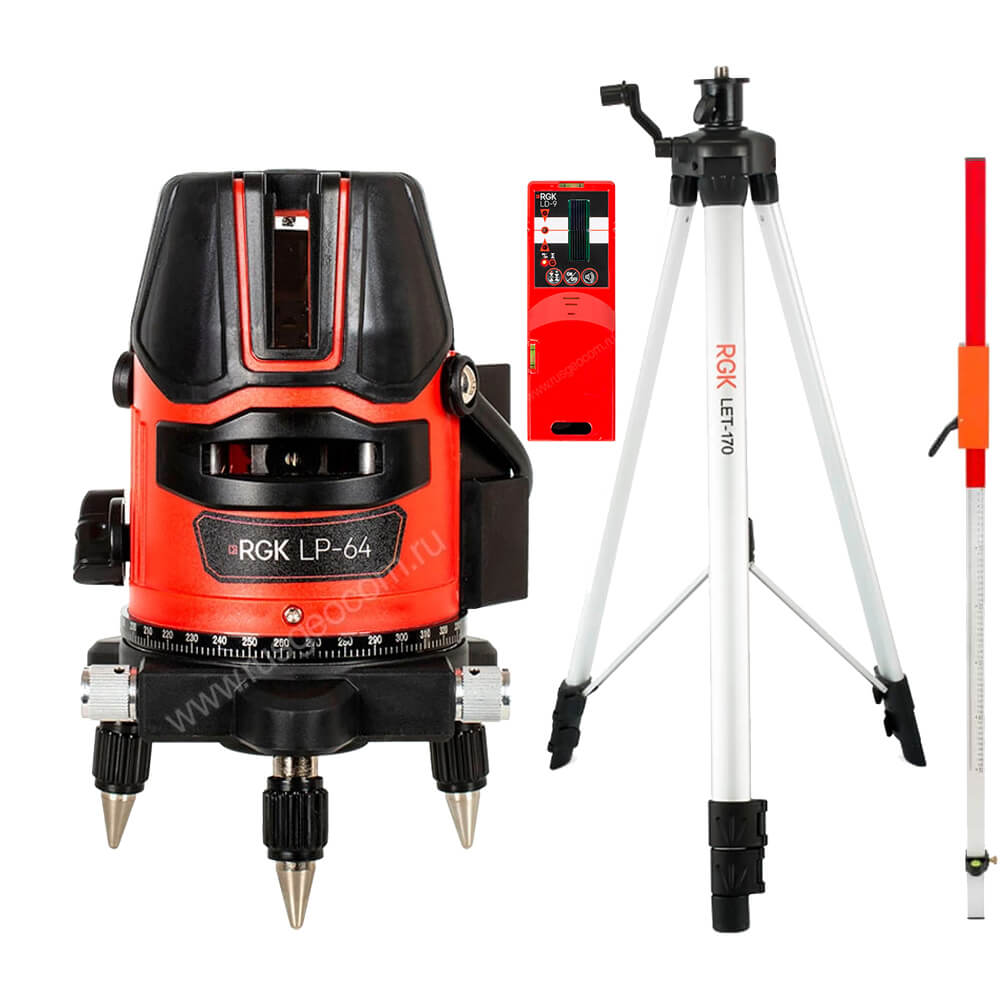 Комплект: лазерный уровень RGK LP-64 + штатив RGK LET-170 приемник RGK LD-9 рейка RGK LR-2