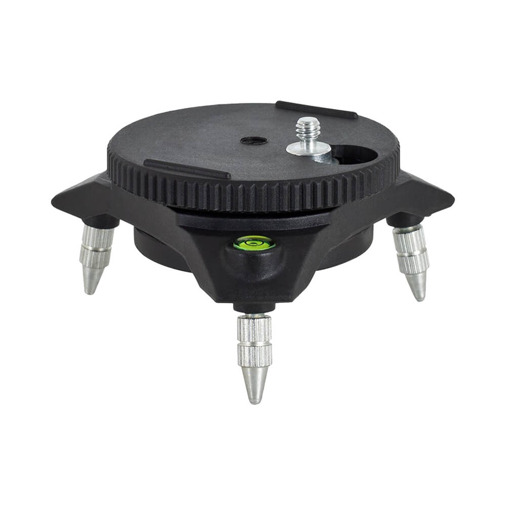 Представляет собой вращающуюся площадку для установки лазерного нивелира RGK PR-110. Благодаря трегеру, вы можете менять положение отображаемых плоскостей без перестановки прибора. Поворотные ножки и встроенный пузырьковый уровень помогут правильно выставить нивелир на неровной поверхности, такой как бетон или дерево.