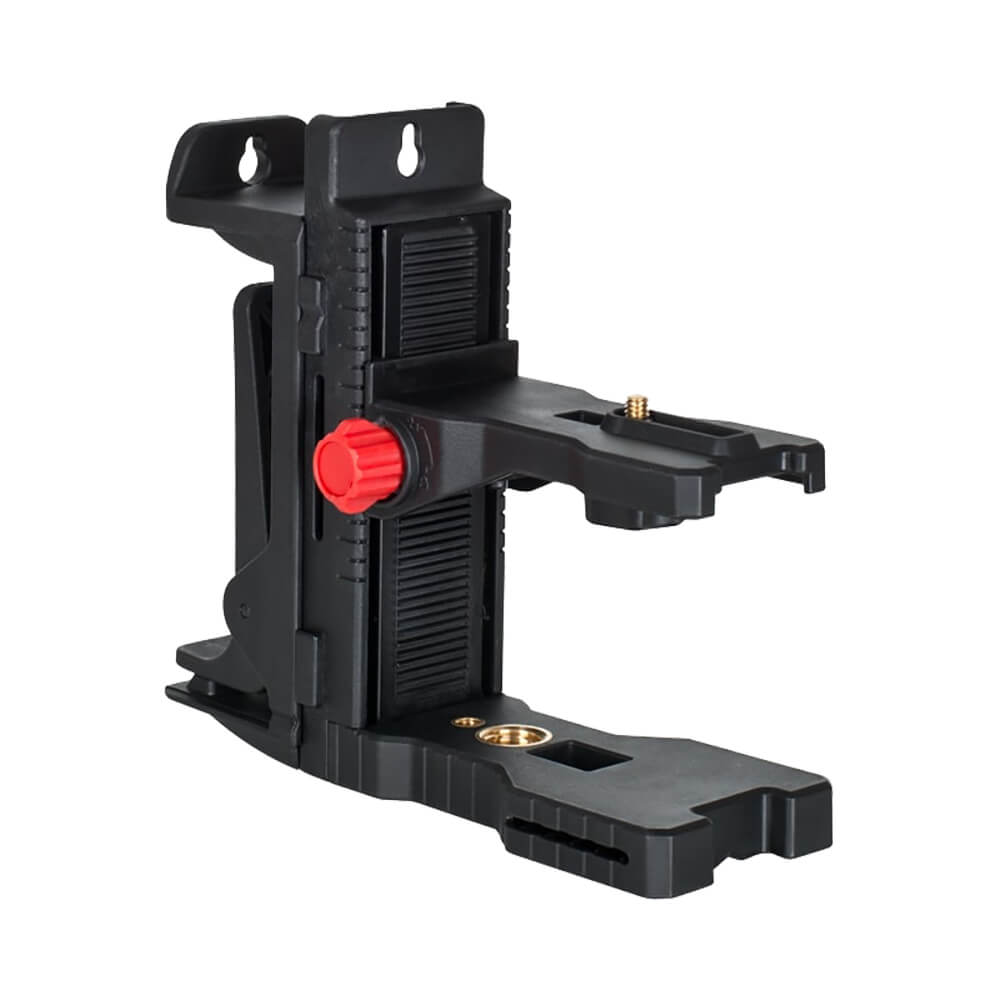 Оснащен резьбой ¼’’ и предназначен для установки лазерных уровней на вертикальные поверхности. Плавная регулировка высоты осуществляется с помощью винтов, что позволяет выставить нивелир на нужный уровень. В основание встроена резьба 5/8’’, благодаря которой кронштейн можно использовать как переходник с одного размера резьбы на другой.