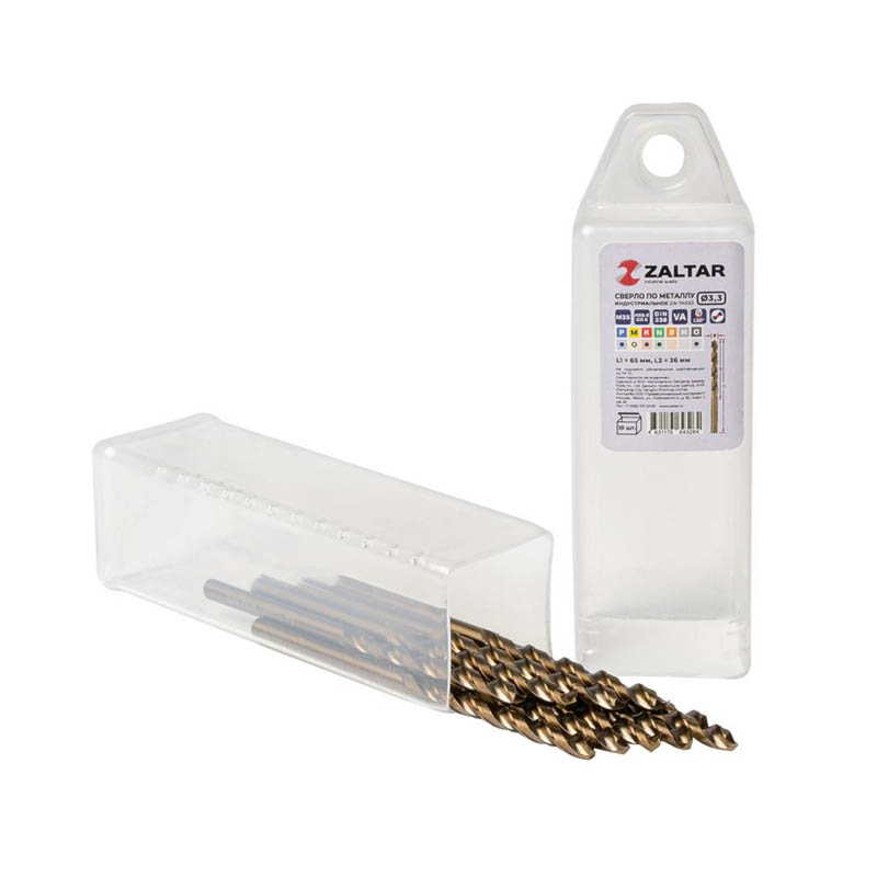 Комплект свёрл по металлу индустриальных Zaltar 10 шт, DIN 338, HSS-E Co5, Тип VA, 5xD, Ø3.30 мм