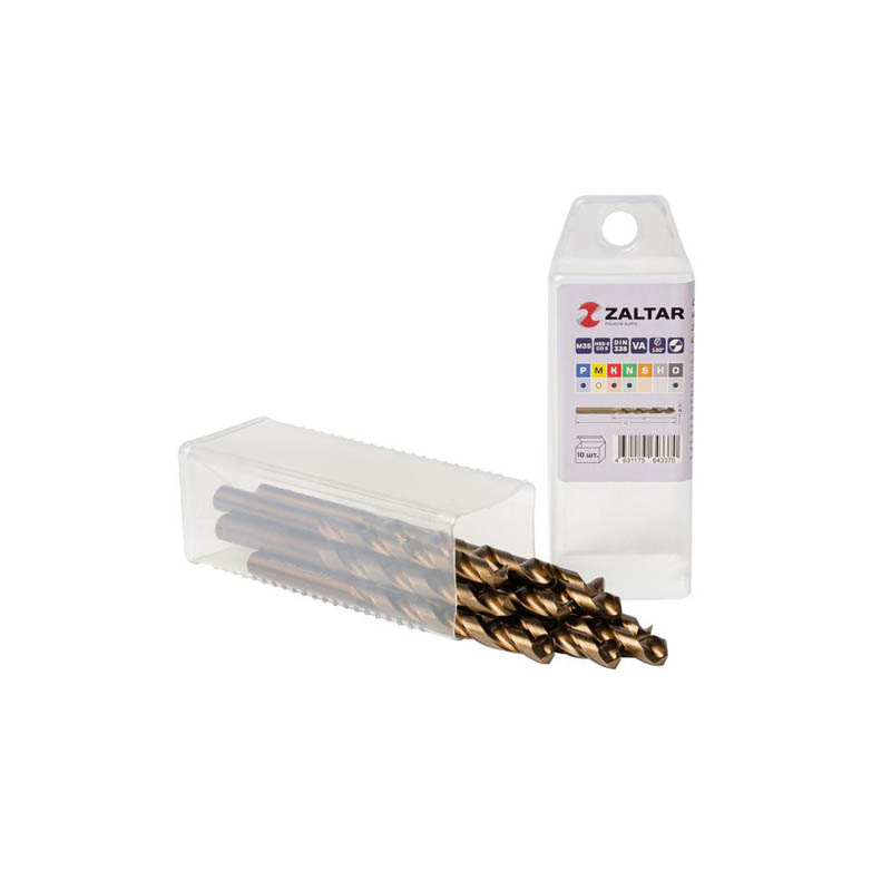 Комплект свёрл по металлу индустриальных Zaltar 10 шт, DIN 338, HSS-E Co5, Тип VA, 5xD, Ø7.50 мм