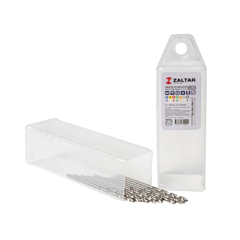Комплект свёрл по металлу индустриальных Zaltar 10 шт, DIN 338, HSS-G, Тип N, 5xD, Ø2.00 мм