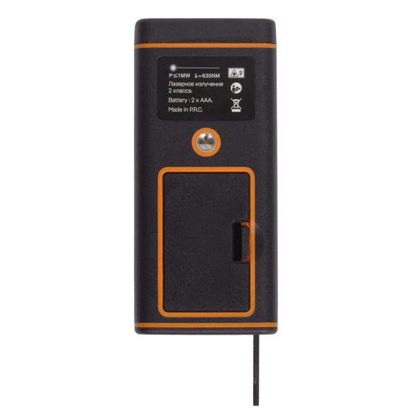 Корпус из приятного на ощупь пластика выдерживает падение с высоты до метра, а рифлёные края и комфортный вес не дают прибору выскользнуть из руки. С выпуклыми кнопками управления легко работать на ощупь, а расстояние между ними позволяет пользоваться дальномером RGK D60 даже в перчатках. Каждая функция имеет свою уникальную кнопку.