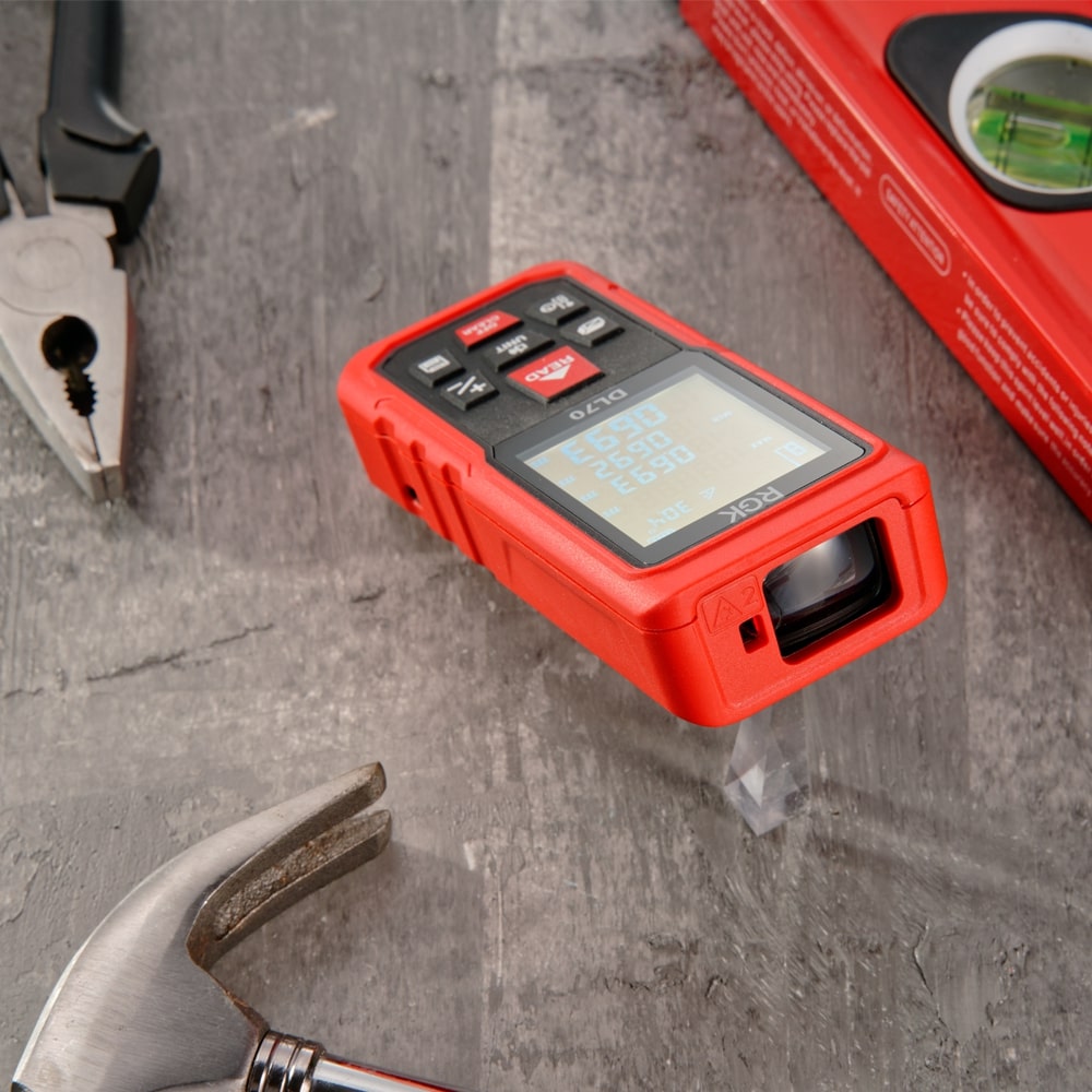 Лазерный дальномер RGK DL70 измеряет расстояния до 70 метров c точностью ±2 мм и оснащен угломером. Ключевая особенность прибора — опция «помощник маляра», которая поможет быстро вычислить сумму площадей стен помещения. Таким образом вы сможете точно рассчитать необходимый объем краски, штукатурки и других материалов.