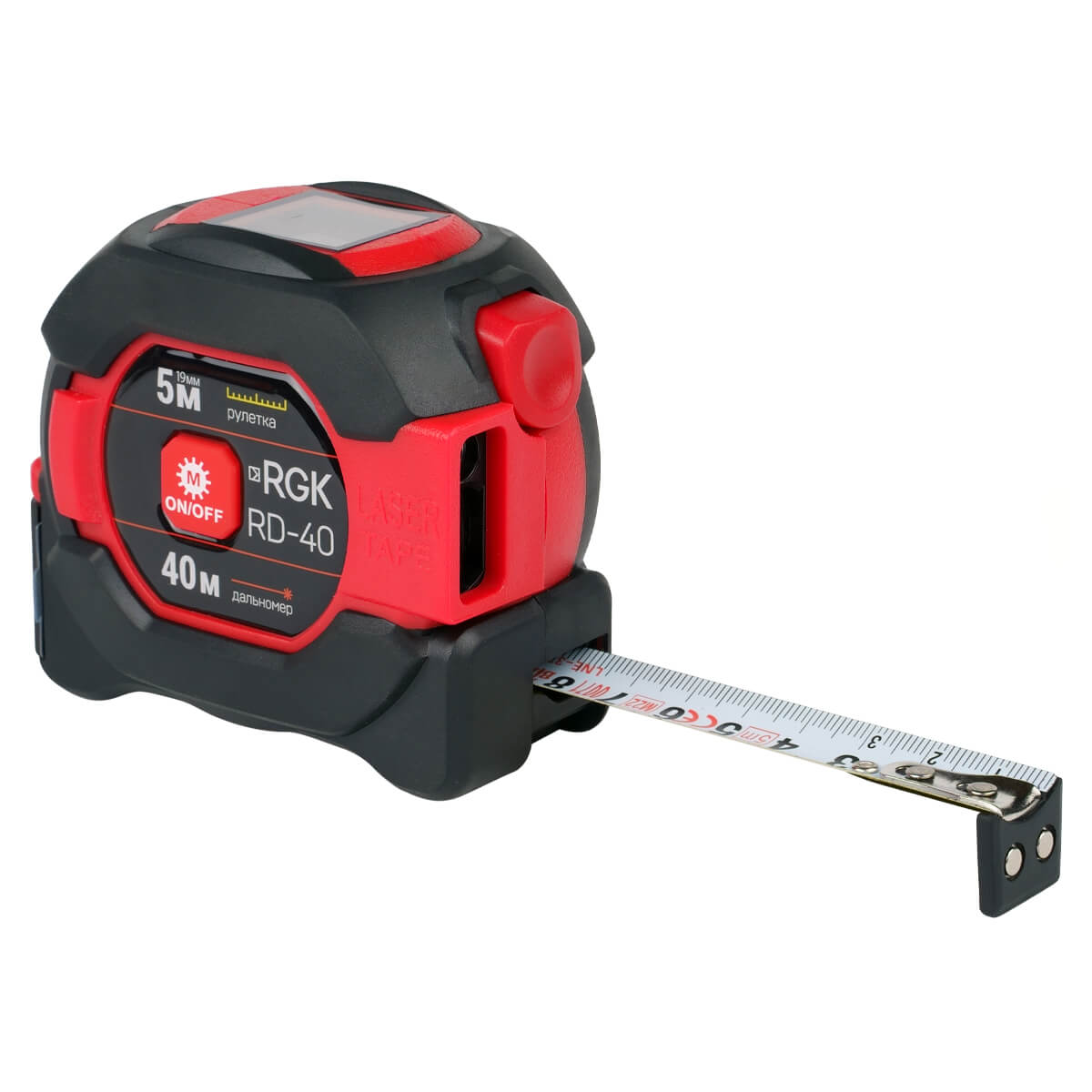 Лазерный дальномер с рулеткой RGK RD-40 — это универсальный измерительный инструмент, незаменимый при проведении столярных или строительных работ. Удачное сочетание функций позволяет решать самые разные задачи и значительно упрощает замеры помещений, конструкций и деталей сложной формы.