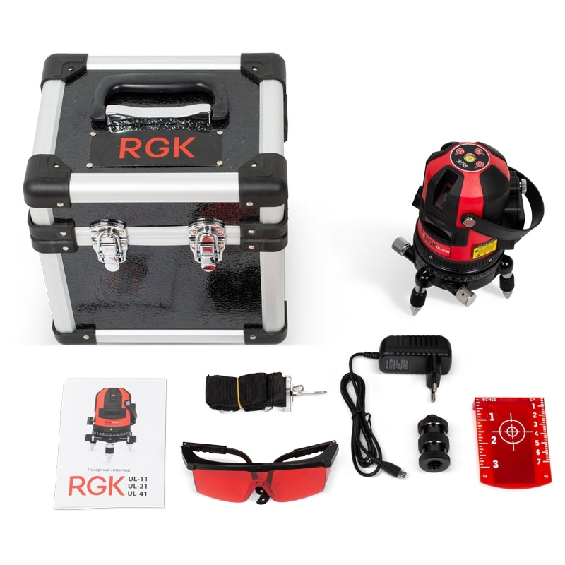 RGK UL-21 – это профессиональный лазерный нивелир, проецирующий три взаимно перпендикулярных плоскости: две вертикальных и одну горизонтальную с углом развёртки составляет 150°. Увеличенное число плоскостей сокращает число перестановок, а поворотный корпус с горизонтальным лимбом и двумя наводящими винтами позволяет с высокой точностью навести вертикальную плоскость или переместить горизонтальную на определённый угол.