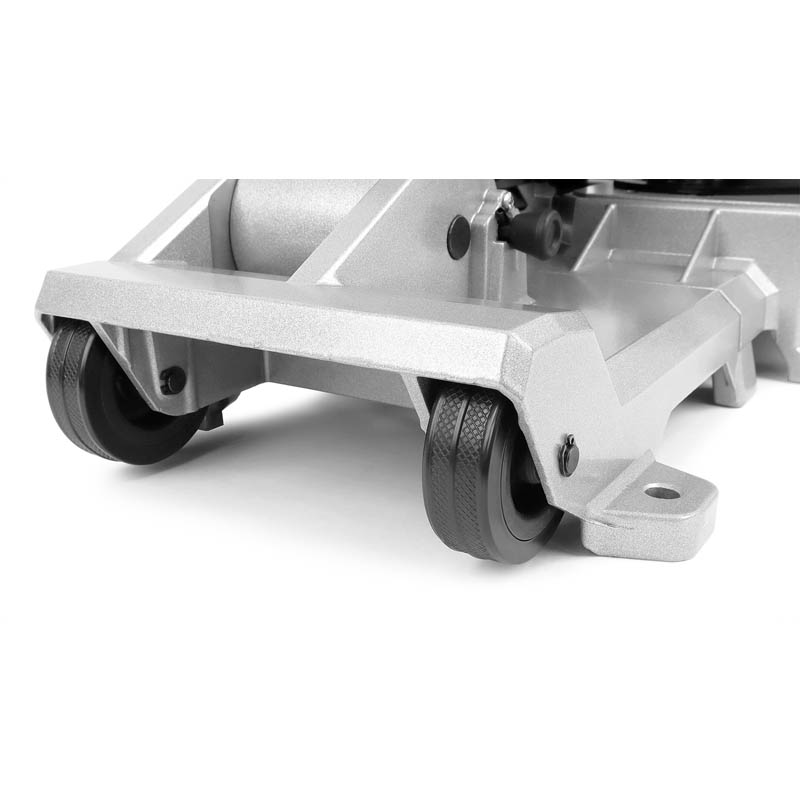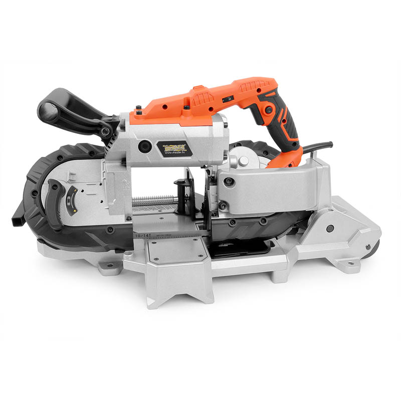 Транспортные колеса позволяют легко перемещать станок по объекту. Демонтировав ленточную пилу со станины, её можно использовать как ручную ленточную пилу.