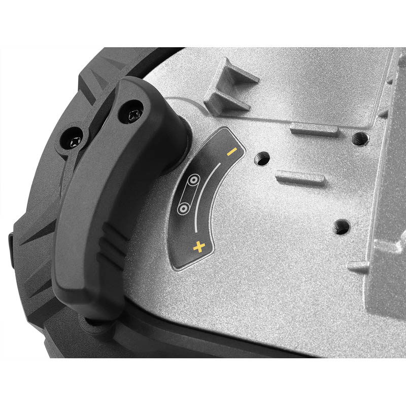 Пила оснащена регулятором скорости движения ленты, что позволяет подобрать нужную скорость ленточного полотна для разных материалов.