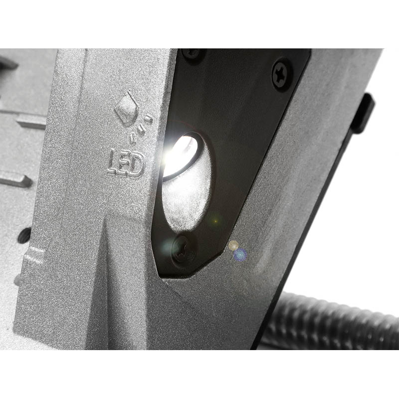 Для работы при слабом общем освещении на станке установлена светодиодная подсветка зоны резания, что позволяет оператору всегда контролировать рез во время работы.
