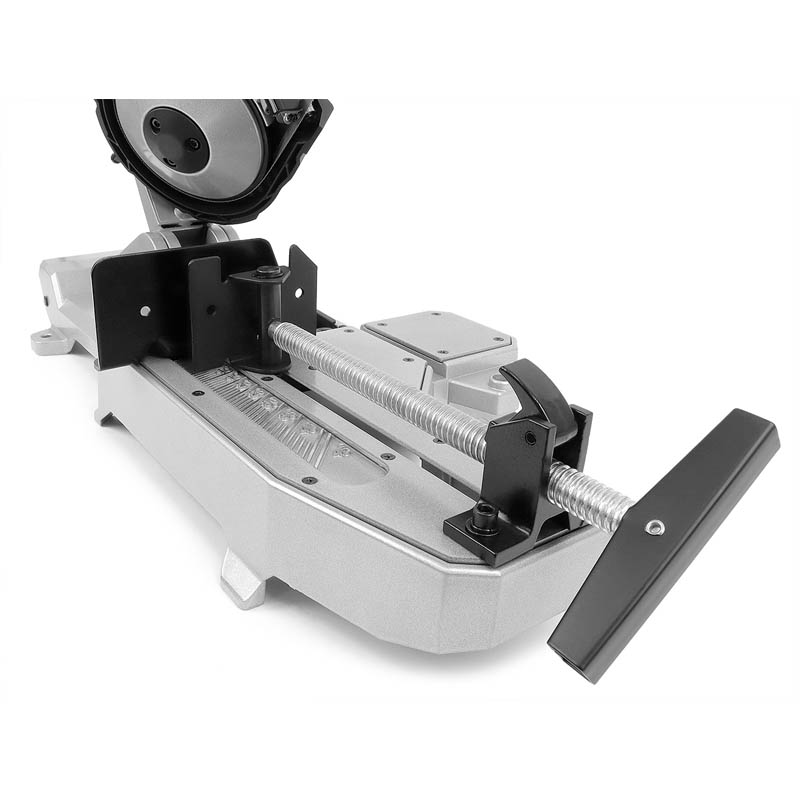 Быстрозажимные тиски надежно фиксируют заготовку. Регулируемая трехрежимная пружинная опора обеспечивает плавное опускание пильной рамы, что гарантирует защиту станка от поломки и безопасность работы для оператора.