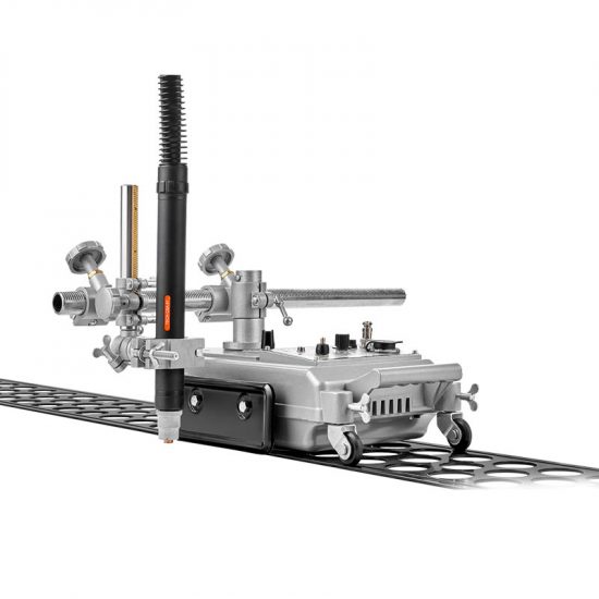 Самоходная тележка перемещается вдоль линии реза по направляющему рельсу или при помощи циркульного устройства. Привод электрический- 220В