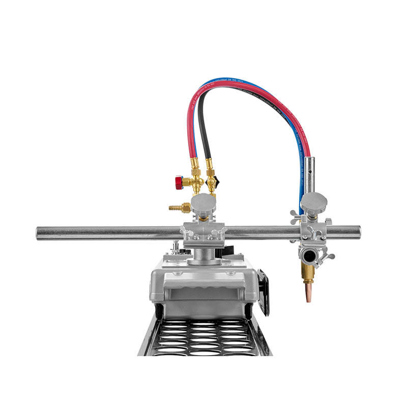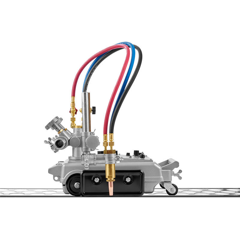 Резка выполняется газокислородным резаком, установленным в держателе на самоходной тележке. Зажим крепления резака для машин термической резки имеет реечный механизм, который позволяет перемещать резак, регулировать его высоту установки над поверхностью металла, а также устанавливать угол наклона резака в пределах ±45°. Для фиксации резака предусмотрены винты.
