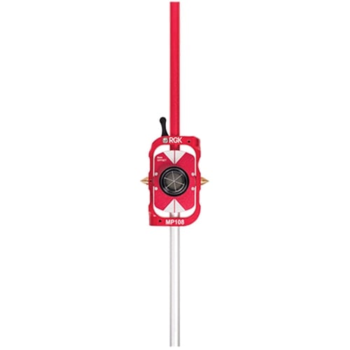 Комплектная веха состоит из 4 секций и позволяет устанавливать RGK MP 108 в диапазоне высот 0.5 — 1.3 м. Отражатель фиксируется специальным рычажным механизмом. Такая конструкция ускоряет все корректировки и гораздо выгоднее в плане оптимизации рабочего времени, если сравнить ее с винтовыми зажимами.