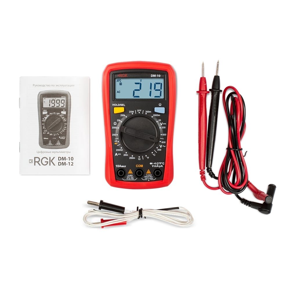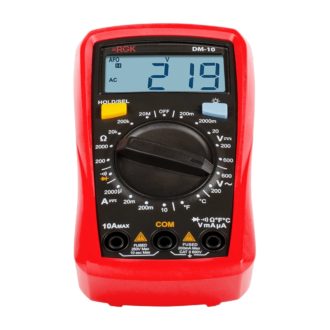 Цифровой мультиметр RGK DM-10 – это прибор для измерения различных параметров электросетей, диагностики оборудования, проверки диодов на работоспособность и прозвонки цепей. За счет компактных размеров и легкости освоения основных функций, эта модель — отличный выбор для домашнего использования.