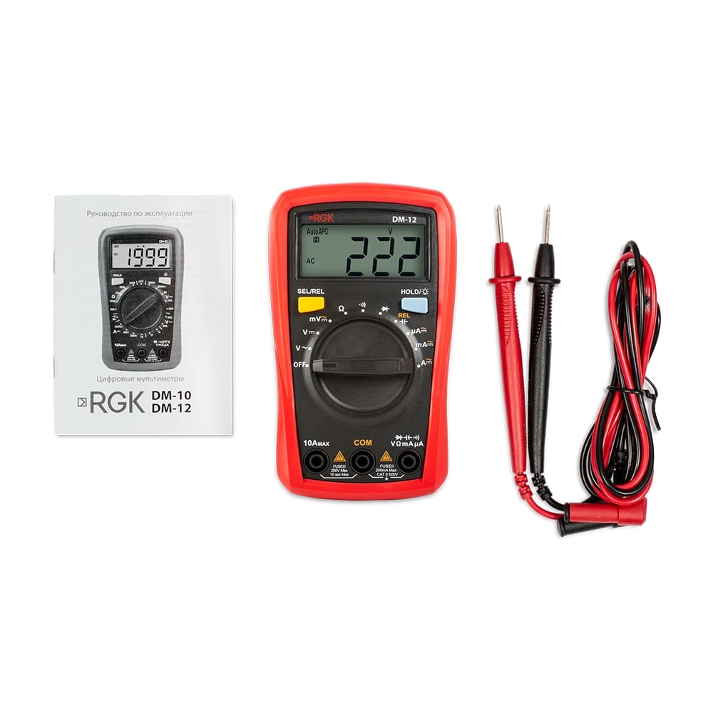 В целях продления срока жизни батарей устройство автоматически отключается через 15 мин. бездействия. Обслуживание мультиметра RGK DM-12 с поверкой с измерением емкости не требует специальных знаний и больших временных затрат. Для всех рутинных операций, таких как замена элементов питания или предохранителей, не требуется ничего кроме отвертки и инструкции.