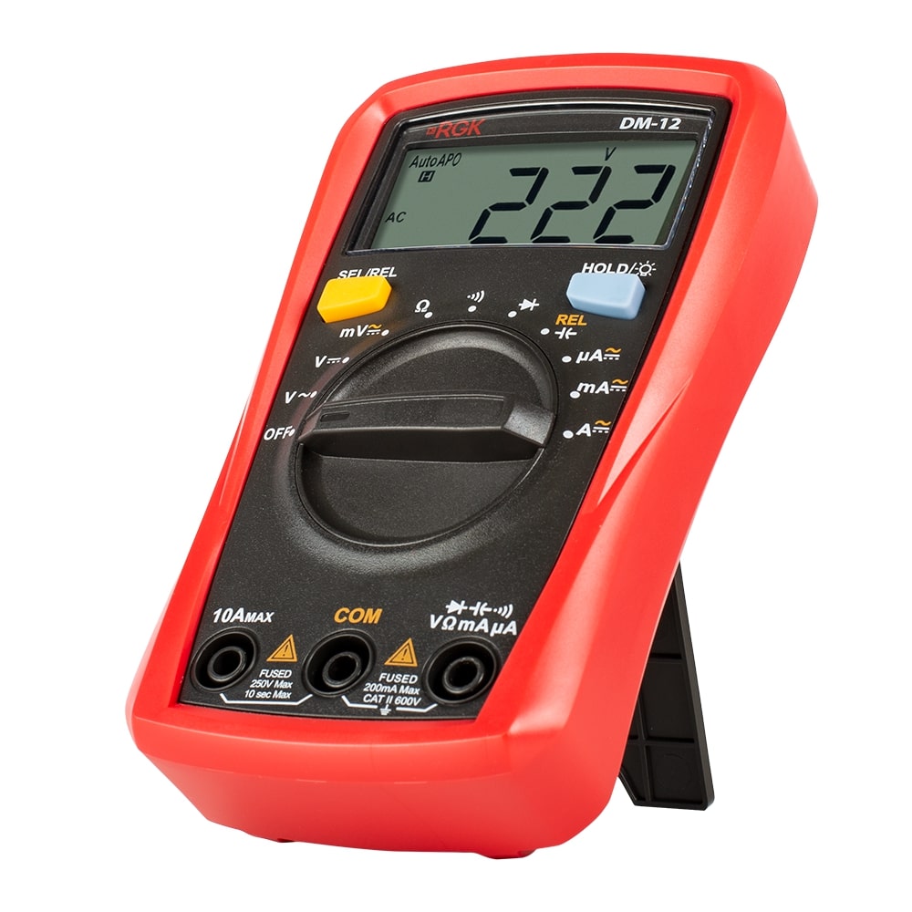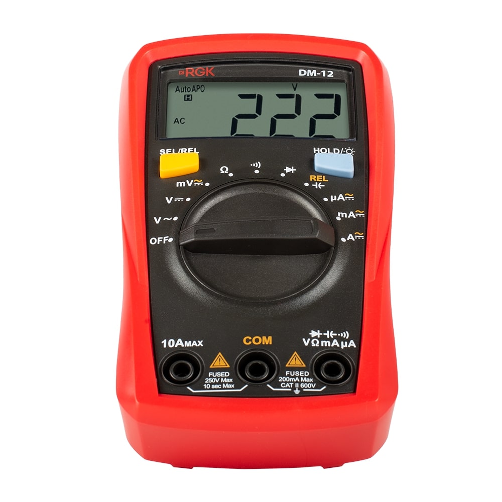 Портативный мультиметр RGK DM-12 с поверкой применяется для быстрой прозвонки цепей, диагностики различных неисправностей электроприборов, определения емкости конденсаторов, проверки работоспособности диодов. Эта надежная модель решает множество бытовых и профессиональных задач в сферах строительства, ремонта, обслуживания электронной техники и др.