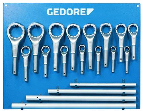 Набор ключей гаечных накидных усиленных изогнутых, 24 -85 мм, 19 шт, Gedore