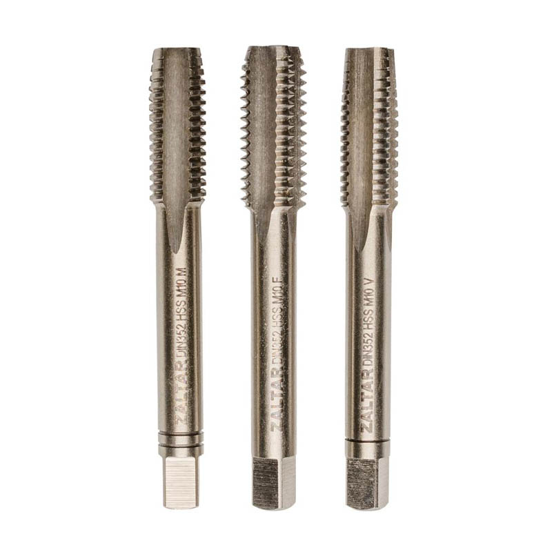 Формирование резьбы происходит в 3 этапа: сначала черновым метчиком #1 (6-8 ниток на заход), затем чистовым #2 (4-5 ниток на заход) и финишным #3 (2-3 нитки на заход). Благодаря этому, снижается усилие, прилагаемое к каждому метчику, а резьба получается более точная и чистая.