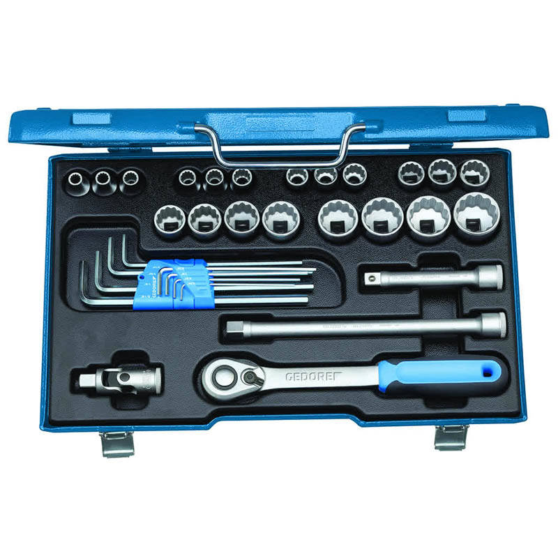 Набор торцевых головок с аксессуарами 1/2″ 31 предмета 5/16-1.1/4AF, Gedore