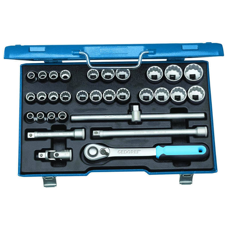 Набор торцевых головок с аксессуарами 1/2″ 31 предметов, Gedore