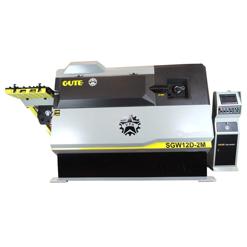 Правильно-гибочный станок с ЧПУ для работы с арматурной сталью. Обрабатывает арматуру диаметром до 12 мм. Максимальная скорость протяжки 75-100 м/мин. Мощность 31 кВт.