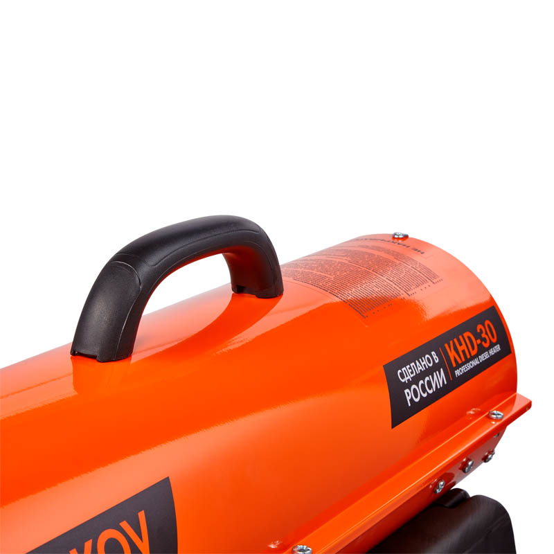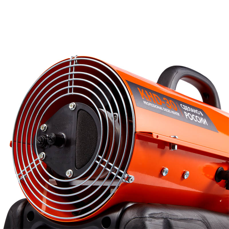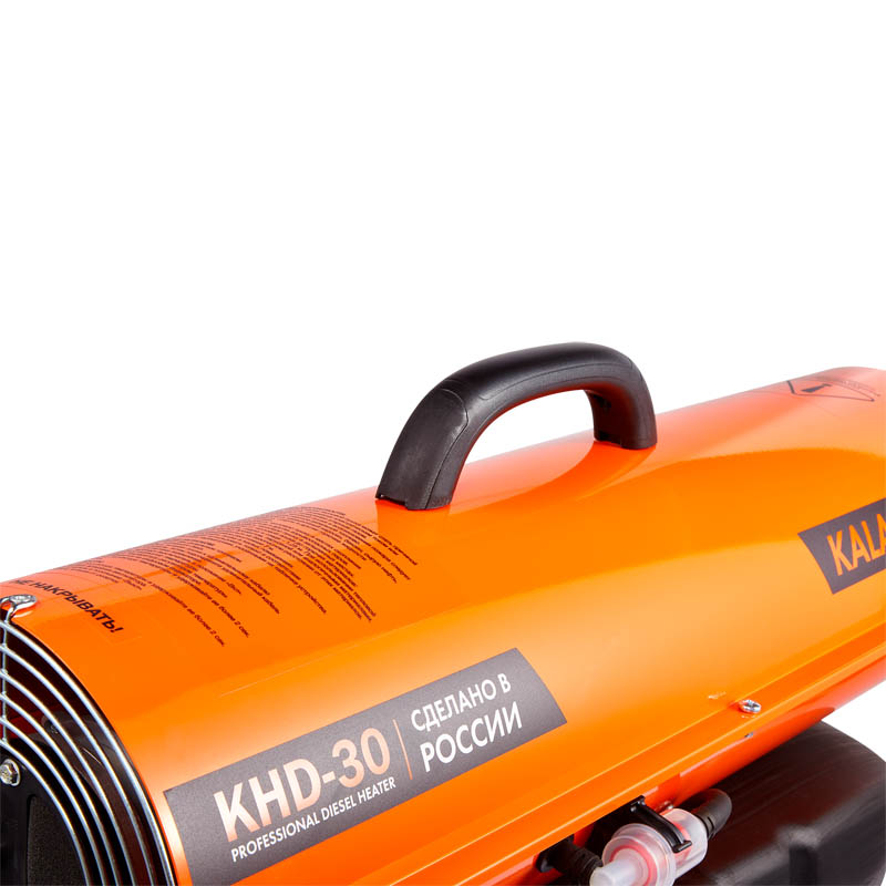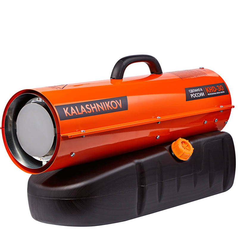 Дизельная тепловая пушка KALASHNIKOV KHD-30 – это мощный обогреватель, работающий на дизельном топливе. Предназначена для обогрева нежилых помещений и локального прогрева рабочих поверхностей. Высокий уровень КПД прибора близок к 100%, а тепловая мощность 30 кВт, производимая тепловой пушкой – вполне достаточна для использования устройства в качестве мощного генератора тепла.