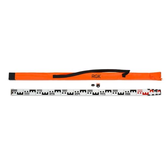 TS-4 – алюминиевая нивелирная рейка высотой 4 м. С одной стороны рейки имеется точная миллиметровая шкала, с другой — Е-градуировка. В комплект входит чехол и пузырьковый уровень.