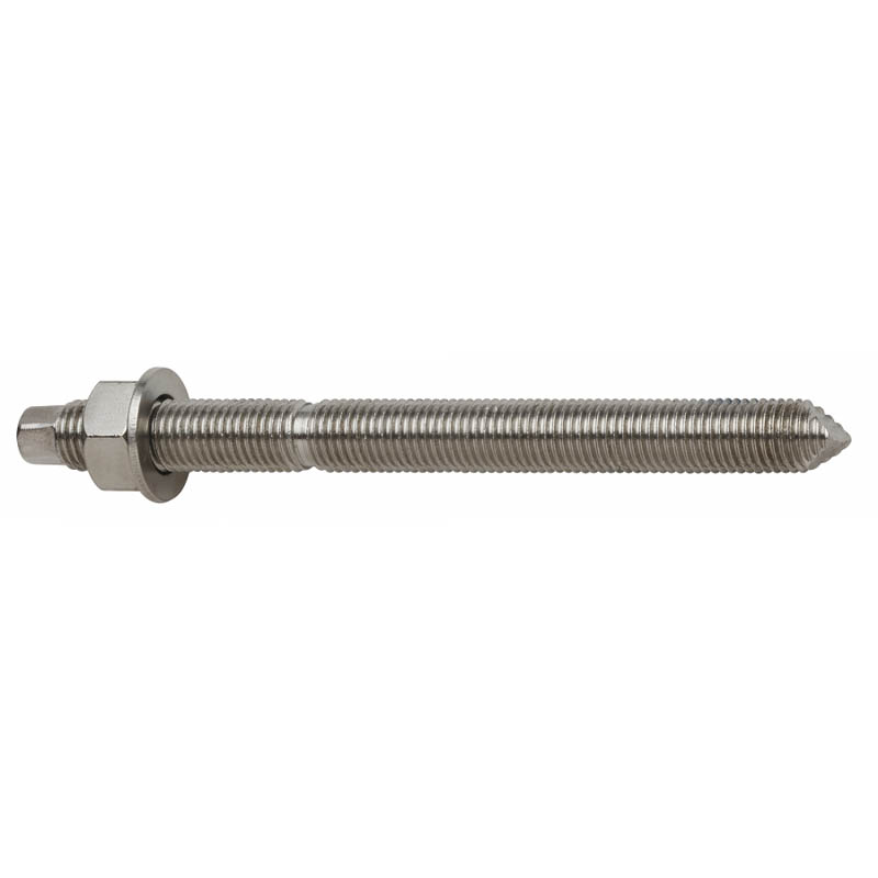 Качественные резьбовые шпильки с шестигранной головкой и заточкой 2 x 45°. Используются с инжекционными массами, химическими капсулами и могут заливаться в бетон. Поставляются с гайкой и шайбой.