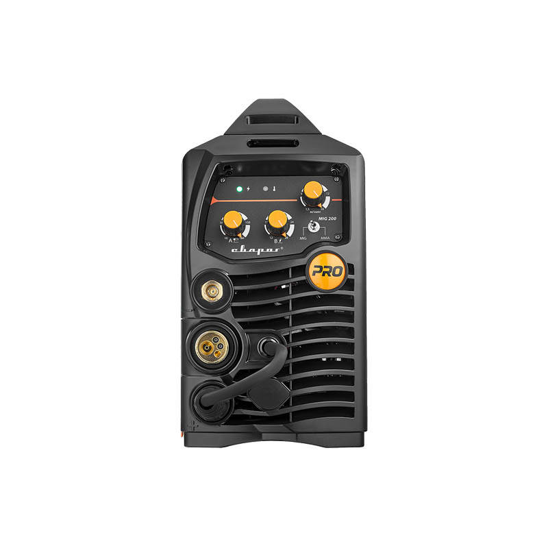 PRO MIG 200 (N220) — инверторный сварочный аппарат, предназначенный для полуавтоматической сварки в среде защитного газа (MIG / MAG), сварки порошковой проволокой (FCAW), а также ручной дуговой сварки покрытыми электродами (ММА).