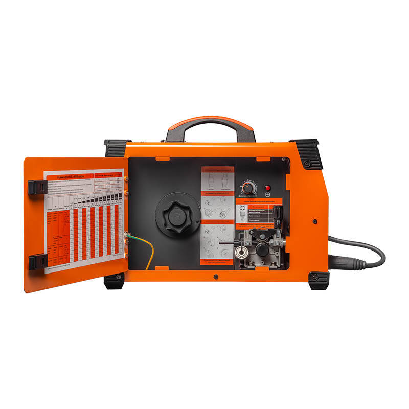 | Особенности | Сварка алюминия, Сварка порошковой проволокой, Смена полярности, Режим сварки ММА, Функция дожигания сварочной проволоки, Холостой прогон проволоки, Регулировка индуктивности |