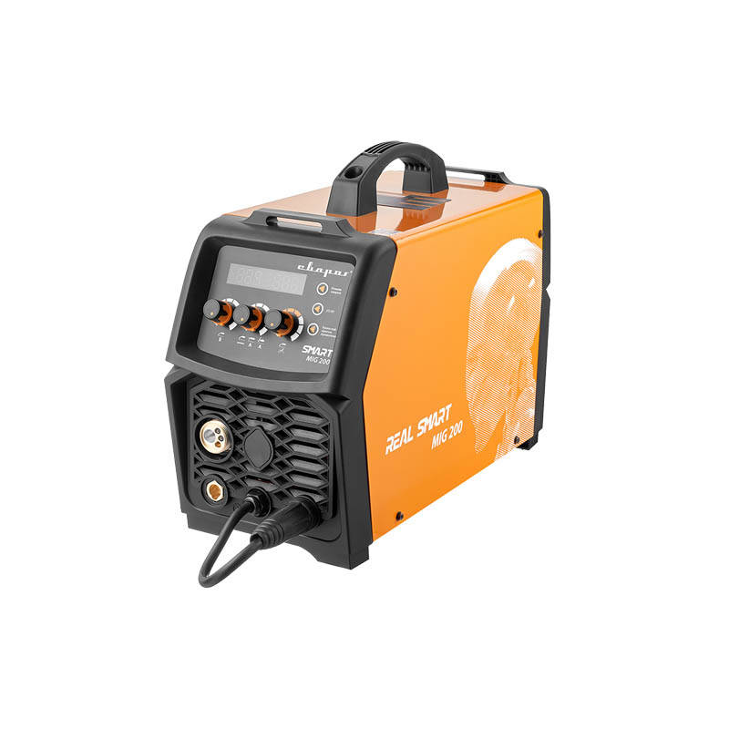 REAL SMART MIG 200 (N2A5) — универсальный, многофункциональный аппарат, предназначенный для полуавтоматической сварки сплошными и порошковыми проволоками (MIG/MAG), для ручной дуговой сварки покрытыми электродами (MMA), а также аргонодуговой сварки неплавящимся электродом (TIG). Все режимы являются полноценными и каждый содержит большой набор вспомогательных функций: