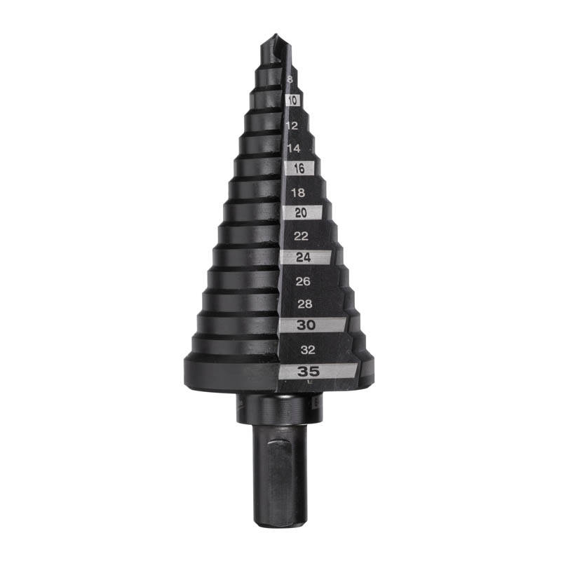 - Преимущества ступенчатых сверл по сравнению с обычными: Одно сверло для разных размеров Делать больше, нести меньше! Лучший вариант для расширения существующих отверстий. Более прочные чем спиральные сверла, толстый сердечник защищает от разрушений. Больше точность и меньше увод, наконечник быстро засверливается. Чистые без заусенцев отверстия, не требующие зенкования. Сверлят пластик без сколов и трещин.