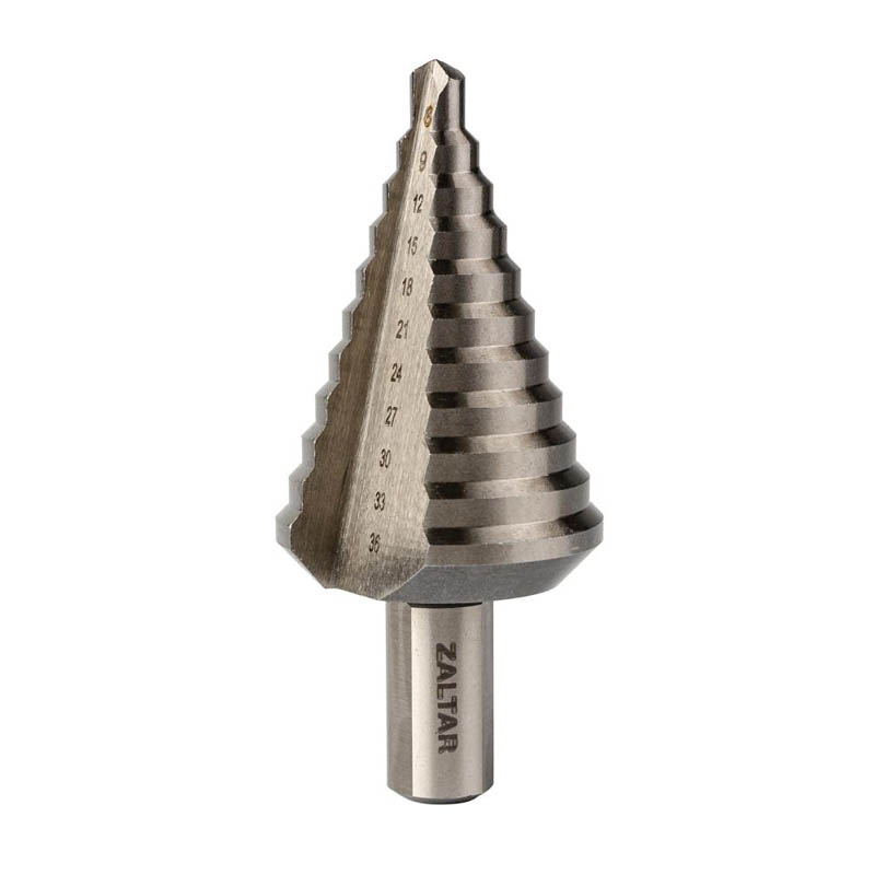 Сверло ступенчатое Zaltar HSS, Ø9-36 мм, прямая канавка, трёхплоскостной хвостовик